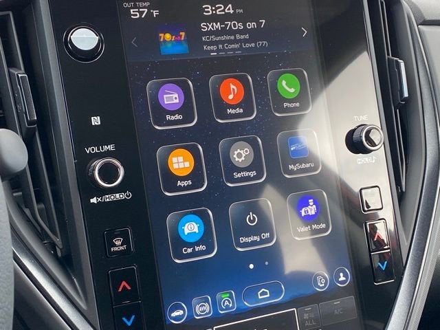 - Radio: Subaru 11.6" Multimedia Plus System -inc: AM/FM stereo, HD Radio, multi-touch gesture high resolution display screen, voice activated controls, Bluetooth® audio streaming and hands-free phone connectivity, Bluetooth® hands-free SMS text messaging connectivity, iPod control capability, smartphone integration: wired and wireless Android Auto w/full screen view and wireless Apple CarPlay w/full screen view, USB and Over The Air (OTA) audio system update, steering wheel audio system and Bluetooth® control switches, 6 speakers (2 dash panel tweeter, 2 front door and 2 rear door), illuminated 3.5mm auxiliary input jack, illuminated front USB A and C input/charge ports, connected services operation indicator, SOS emergency assistance: red SOS button and enhanced roadside assistance: blue i-button