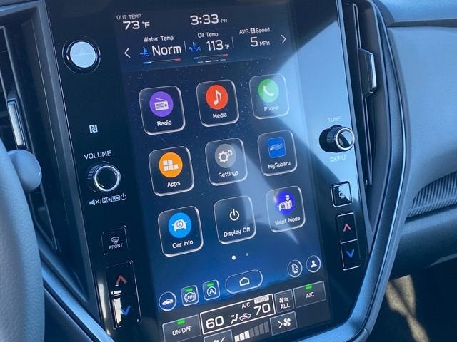- Radio: Subaru 11.6" Multimedia Plus System -inc: AM/FM stereo, HD Radio, multi-touch gesture high resolution display screen, voice activated controls, Bluetooth® audio streaming and hands-free phone connectivity, Bluetooth® hands-free SMS text messaging connectivity, iPod control capability, smartphone integration: wired and wireless Android Auto w/full screen view and wireless Apple CarPlay w/full screen view, USB and Over The Air (OTA) audio system update, steering wheel audio system and Bluetooth® control switches, 6 speakers (2 dash panel tweeter, 2 front door and 2 rear door), illuminated 3.5mm auxiliary input jack, illuminated front USB A and C input/charge ports, connected services operation indicator, SOS emergency assistance: red SOS button and enhanced roadside assistance: blue i-button