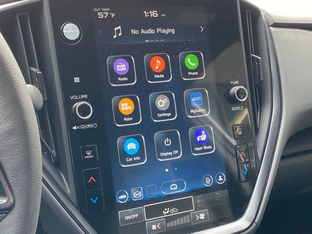 - Radio: Subaru 11.6" Multimedia Plus System -inc: AM/FM stereo, HD Radio, multi-touch gesture high resolution display screen, voice activated controls, Bluetooth® audio streaming and hands-free phone connectivity, Bluetooth® hands-free SMS text messaging connectivity, iPod control capability, smartphone integration: wired and wireless Android Auto w/full screen view and wireless Apple CarPlay w/full screen view, USB and Over The Air (OTA) audio system update, steering wheel audio system and Bluetooth® control switches, 6 speakers (2 dash panel tweeter, 2 front door and 2 rear door), illuminated 3.5mm auxiliary input jack, illuminated front USB A and C input/charge ports, connected services operation indicator, SOS emergency assistance: red SOS button and enhanced roadside assistance: blue i-button