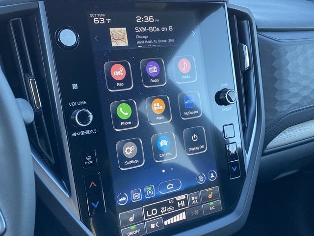 - Radio: Subaru 11.6" Multimedia Plus System -inc: valet mode, integrated center information display, AM/FM stereo HD Radio, multi-touch gesture high resolution display screen, voice activated controls, Bluetooth® audio streaming and hands-free phone connectivity w/SMS text messaging (refer to Subaru.com for cellphone compatibility), iPod control capability, smartphone integration: Android Auto and Apple CarPlay w/full screen view and wireless connection, SiriusXM satellite radio w/360L (free 4-month trial subscription included), USB and Over The Air (OTA) audio system update, steering wheel controls, 6 speakers, 3.5mm auxiliary input jack and roof mounted audio and satellite antenna