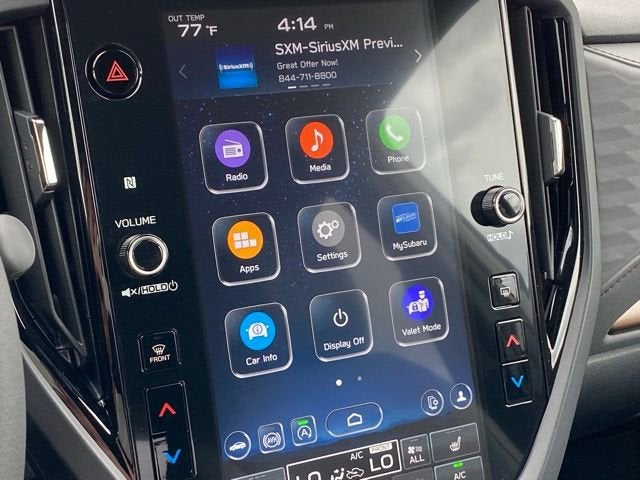 - Radio: Subaru 11.6" Multimedia Plus System -inc: valet mode, integrated center information display, AM/FM stereo HD Radio, multi-touch gesture high resolution display screen, voice activated controls, Bluetooth® audio streaming and hands-free phone connectivity w/SMS text messaging (refer to Subaru.com for cellphone compatibility), iPod control capability, smartphone integration: Android Auto and Apple CarPlay w/full screen view and wireless connection, SiriusXM satellite radio w/360L (free 4-month trial subscription included), USB and Over The Air (OTA) audio system update, steering wheel controls, 6 speakers, 3.5mm auxiliary input jack and roof mounted audio and satellite antenna