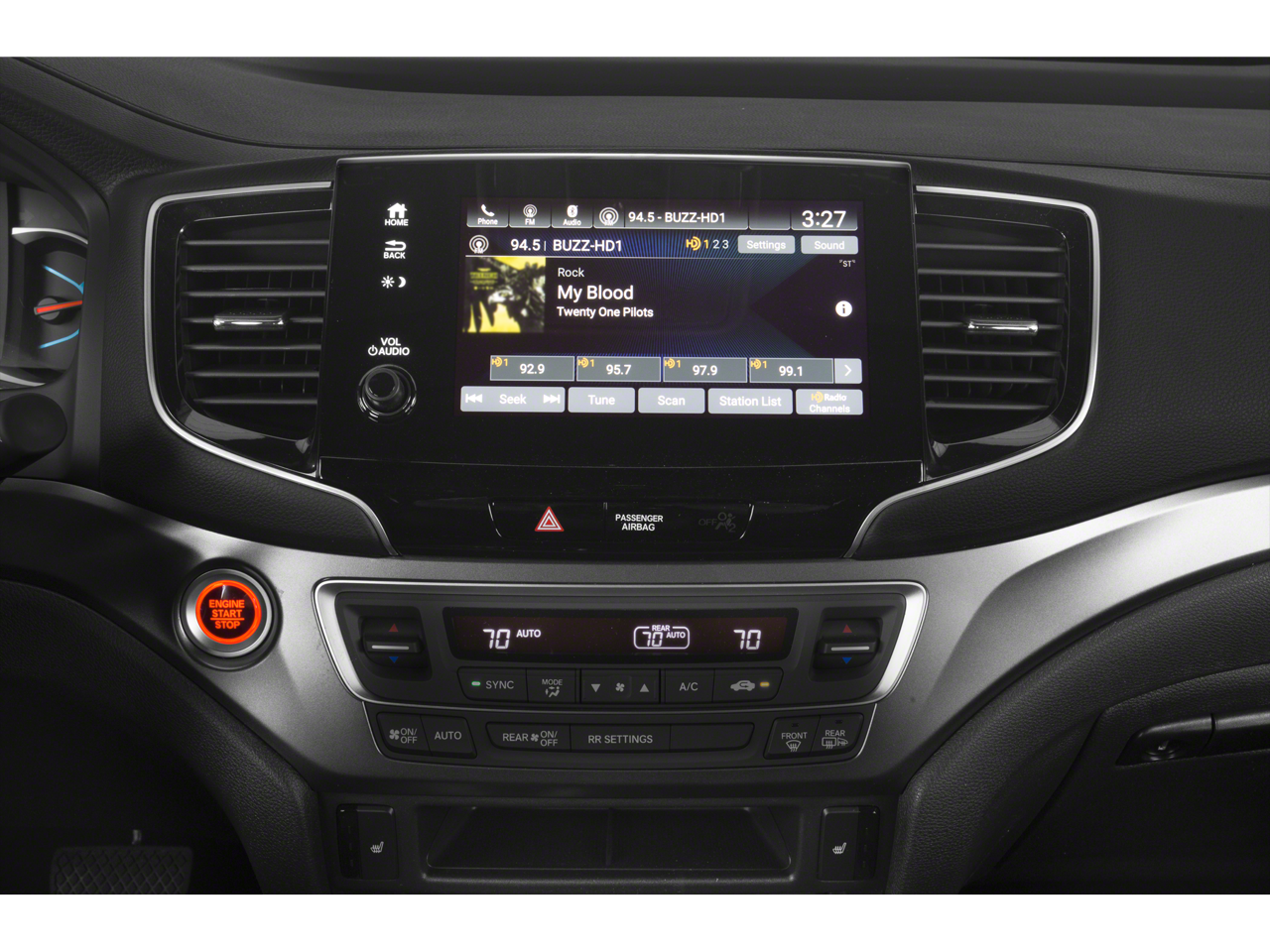 • Radio: 215-Watt Audio System w/7 Speakers -inc: subwoofer, 8" display audio w/high-resolution electrostatic touch-screen and customizable feature settings, Bluetooth® HandsFreeLink, Bluetooth® streaming audio, MP3/auxiliary input jack in center console, Radio Data System (RDS), Speed-Sensitive Volume Compensation (SVC), (3) 2.5-amp USB charging ports, 12-volt power outlets in front console, center console and cargo area, HondaLink, Apple CarPlay integration, Android Auto integration, CabinControl remote compatibility, SMS text message function, SiriusXM radio, HD Radio and 2.5-amp USB smartphone/audio interface port in front console SiriusXM services require a subscription after any trial period.