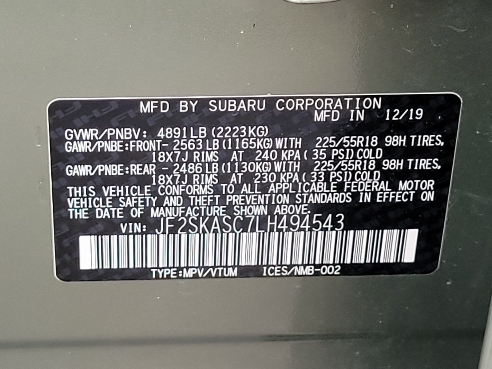 VIN: JF2SKASC7LH494543