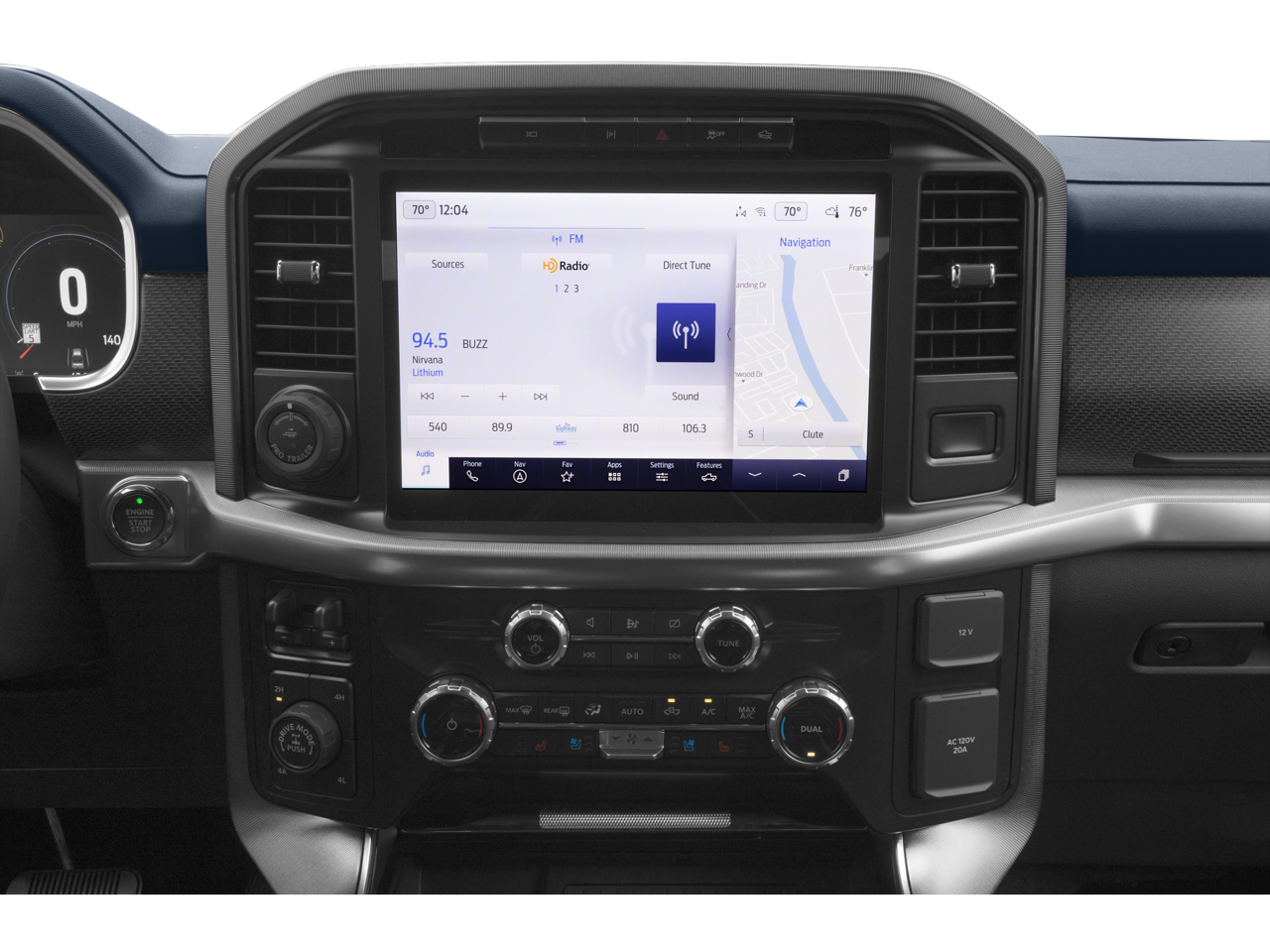 - SYNC 4 w/Enhanced Voice Recognition -inc: 12" LCD capacitive touchscreen w/swipe capability, information on demand panel, wireless phone connection, cloud connected, AppLink w/App catalog, 911 Assist, Apple CarPlay and Android Auto compatibility, digital owners manual, conversational voice command recognition and connected built-in navigation, Note: Navigation services require SYNC 4 and FordPass Connect (optional on select vehicles), complimentary connect service and the FordPass app (see FordPass Terms for details), Eligible vehicles receive a complimentary 3-year trial of navigation services that begins on the new vehicle warranty start date, Customers must unlock the navigation service trial by activating the eligible vehicle w/a FordPass member account, If not subscribed by the end of the complimentary period, the connected navigation service will terminate, and the system will revert to embedded offline navigation, Connected service and features depend on compatible AT&T network availability, Evolving technology/cellular networks/vehicle capability may limit functionality and prevent operation of connected features, FordPass app, compatible w/select smartphone platforms, is available via a download, Message and data rates may apply