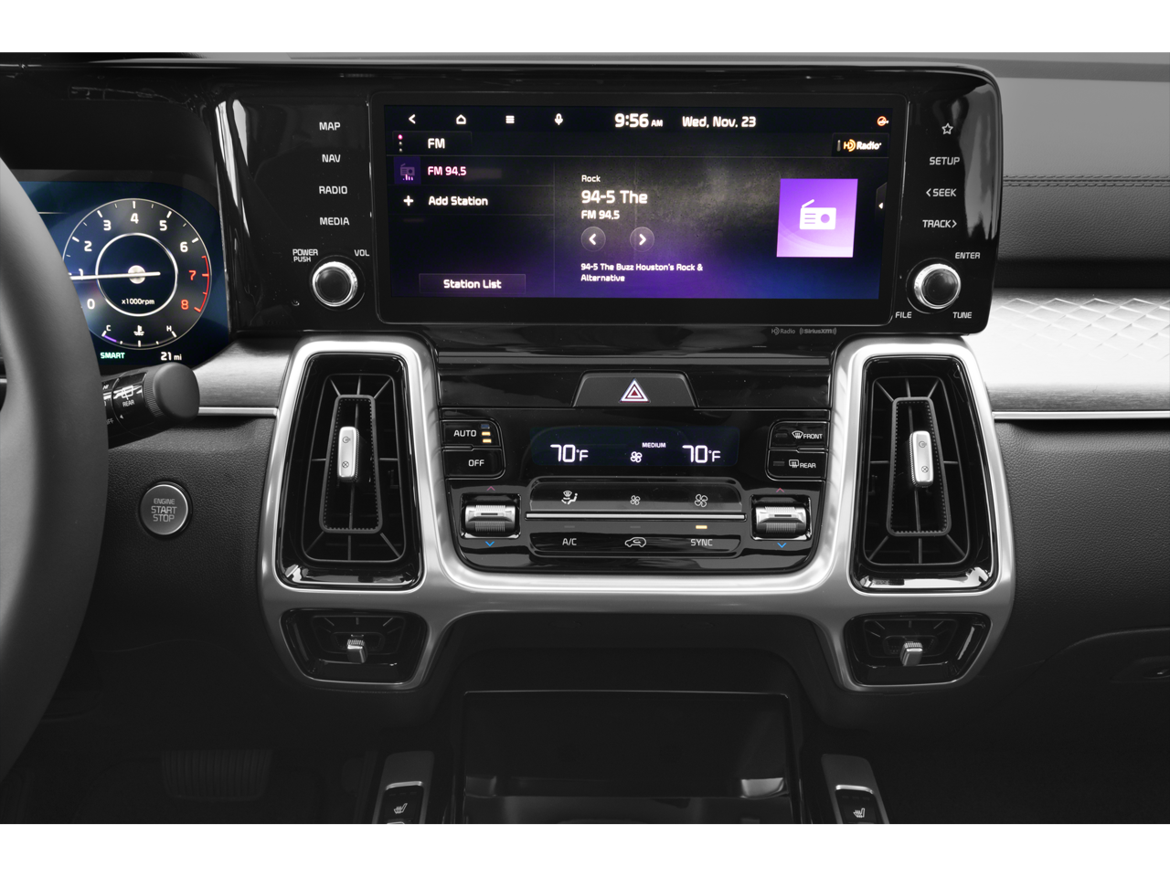 • Radio: AM/FM Audio System -inc: 10.25" touchscreen, navigation, telematics, modem, HD Radio, Bluetooth® w/audio remote control and voice recognition, wired Android Auto/Apple CarPlay, USB, 6 speakers and SiriusXM