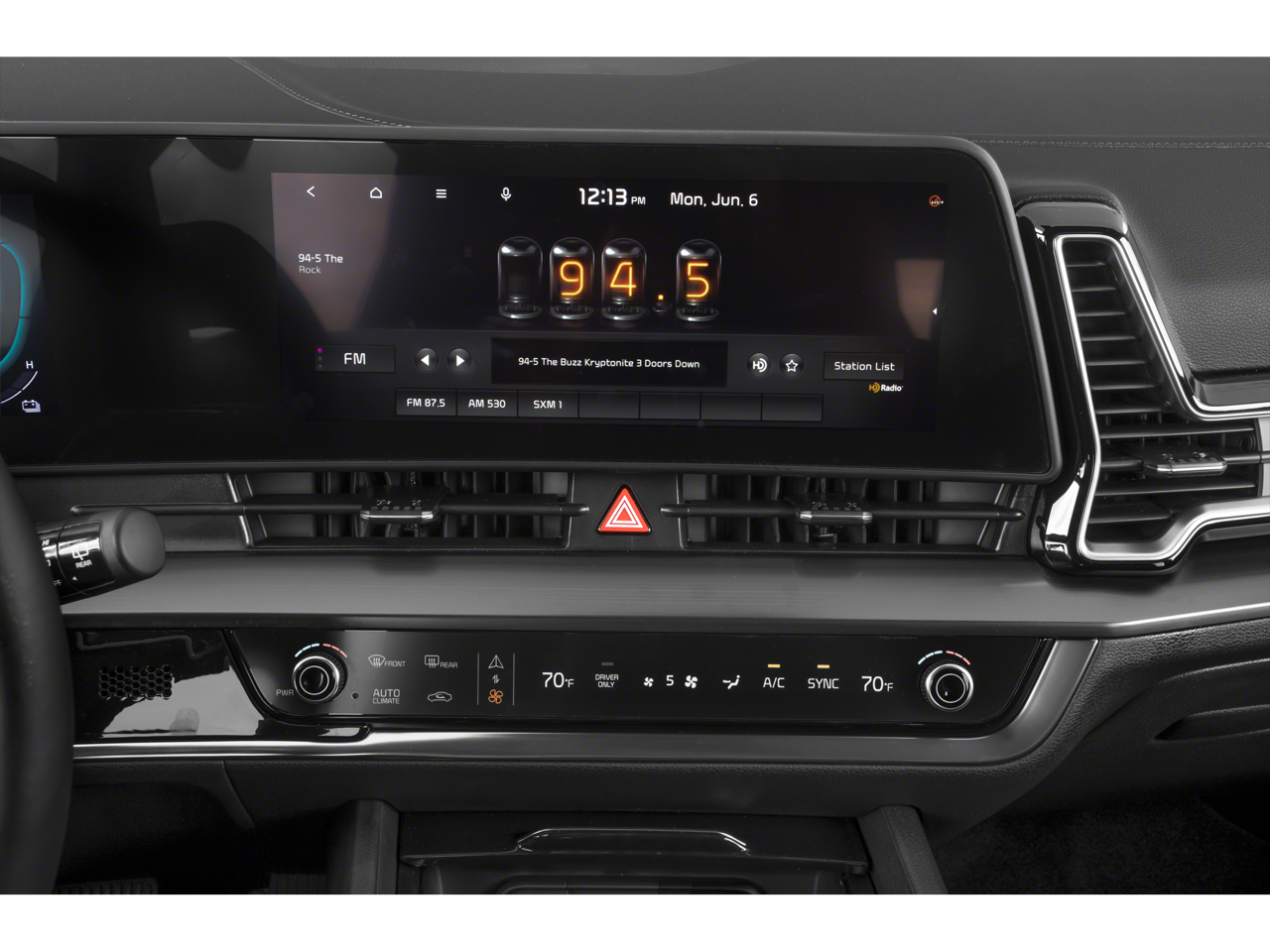 • Radio: AM/FM/HD Audio System -inc: 12.3" touchscreen w/navigation, 6 speakers, wired Apple Carplay and Android Auto, UVO telematics, voice recognition, USB, SiriusXM and Bluetooth® phone and streaming audio