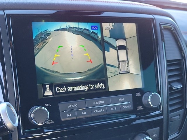 • Radio: NissanConnect w/Navigation -inc: 9" touchscreen display, 6 speakers, wireless Apple CarPlay, Android Auto, SiriusXM radio, SiriusXM Traffic, SiriusXM Travel Link w/weather, fuel prices, movie listings, stock info, sports and parking, TomTom weather, Nissan door to door navigation w/3D building graphics and satellite imagery, connected navigation features including online POI search, over-the-air map updates and online premium traffic information, 2 illuminated USB (1 type A, 1 type C) connection ports for iPod interface, Bluetooth® hands-free phone system, streaming audio via Bluetooth®, hands-free text messaging assistant, Nissan voice recognition for navigation and audio and Siri Eyes Free