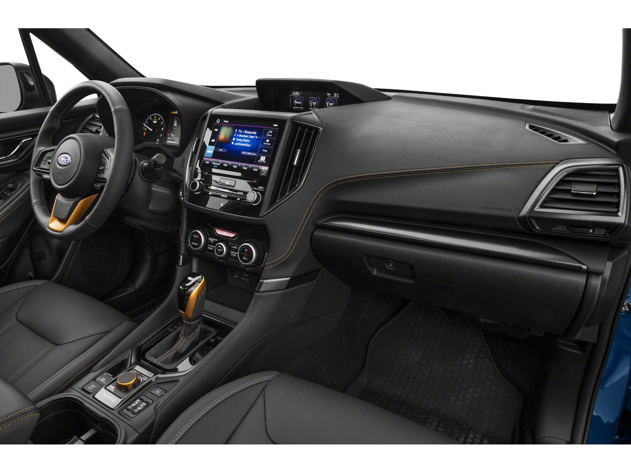 • Textured StarTex Upholstery -inc: silver and copper stitching and embossed Subaru Wilderness logo on head restraints