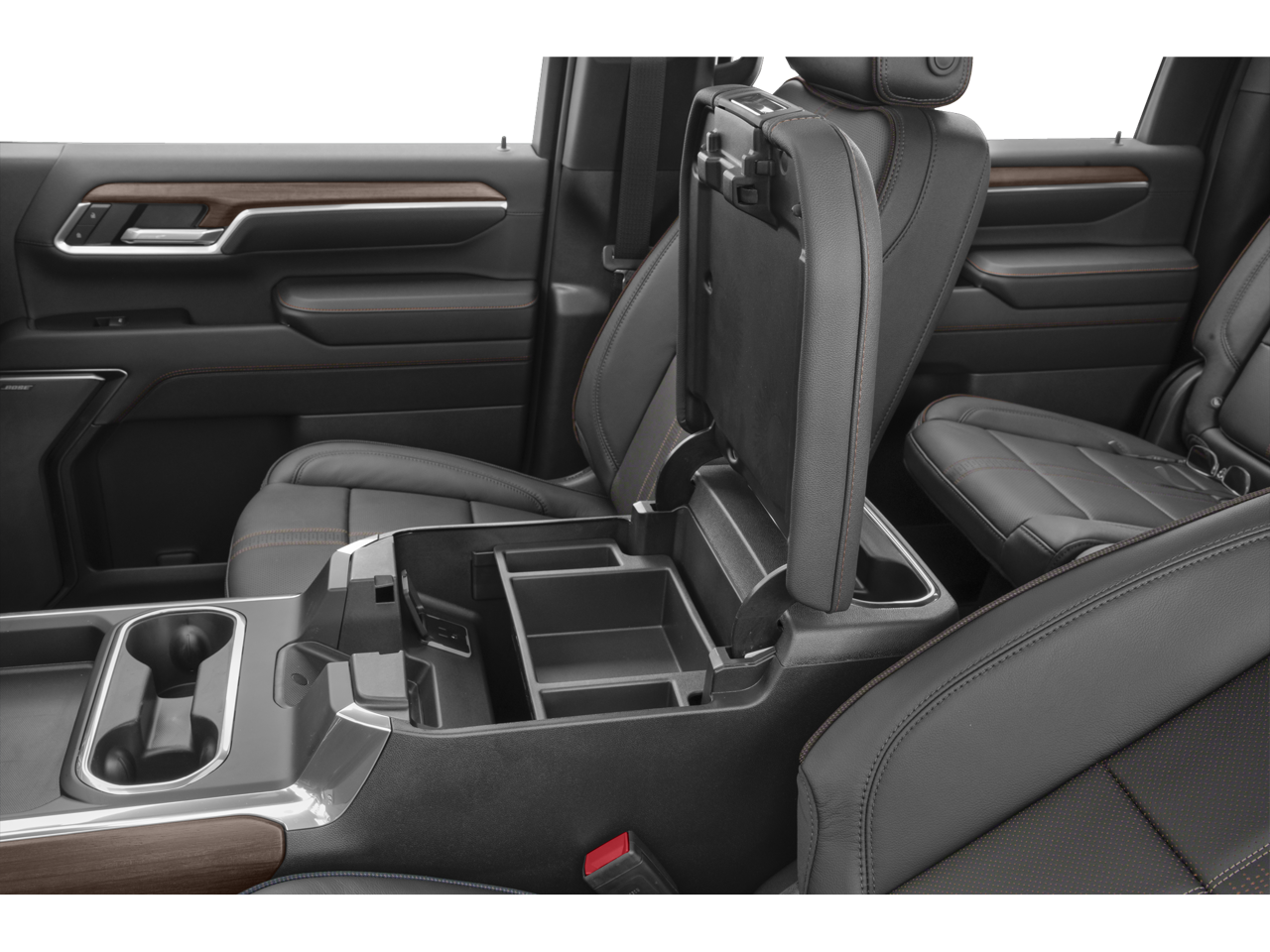• Seat, Up-level Rear with Storage Package 60/40 Split rear seat with center armrest, right, and left seat back storage, and under seat jack storage (Crew Cabs Only) Rear seat leather appointed (Rear seat features leather seating surfaces.)