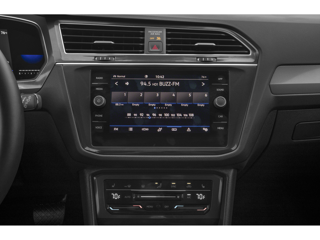 • Radio: MIB3 Composition Media AM/FM/HD -inc: 8" touchscreen, WMA/MP3/FLAC player w/USB-C, voice control, 6-speaker sound system, capability for in-vehicle 4G LTE enabled Wi-Fi (cellular data plan required; includes limited trial), capability for VW Car-Net services (capabilities for certain services vary; requires enrollment or subscription), Bluetooth® connectivity (for compatible devices), SiriusXM w/360L (w/3-month free trial subscription; 360L services require acceptance of Car-Net terms), App-Connect smartphone integration (w/Apple CarPlay, Android Auto and MirrorLink) via USB, Wireless App-Connect smartphone integration (for compatible devices) w/multi-phone pairing capability, 45W fast charging (for compatible mobile phones and accessories) via USB in first and second rows and Qi wireless inductive charger (for compatible mobile phones and accessories)