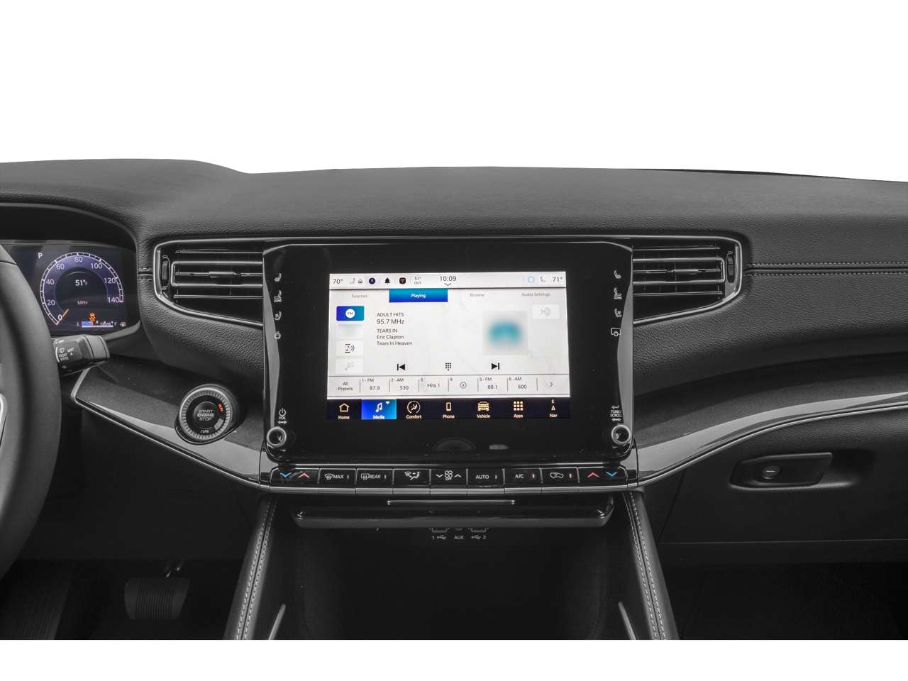 - Radio w/Seek-Scan, Clock, Speed Compensated Volume Control, Aux Audio Input Jack, Steering Wheel Controls, Voice Activation, Radio Data System and External Memory Control