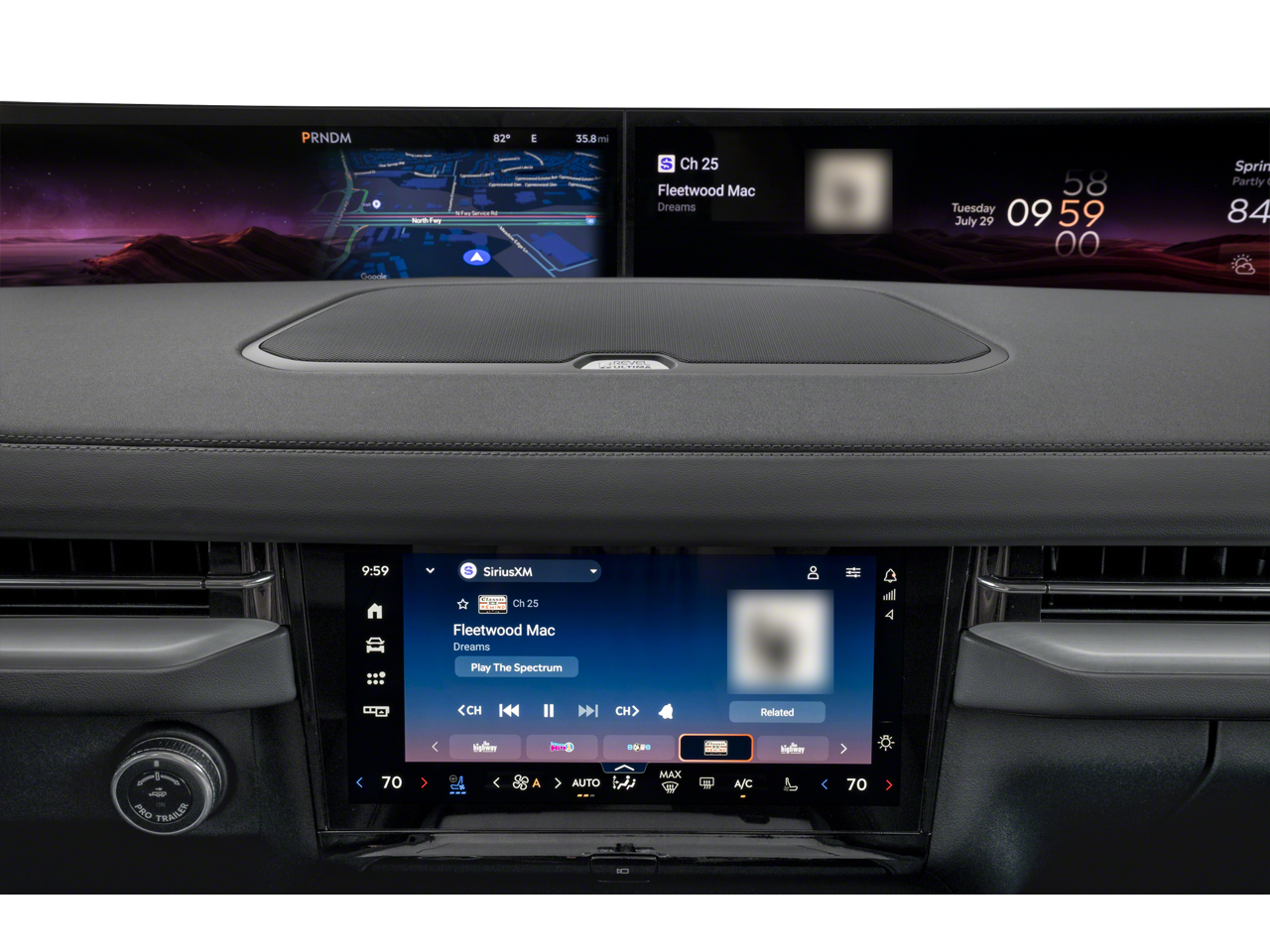 - Radio: Revel Ultima 3D AM/FM/HD Audio System -inc: 28 speakers including subwoofer featuring QuantumLogic 3D surround technology, speed-compensated volume, satellite, audio profile settings (memory), 11.1" LCD capacitive touchscreen in center stack w/swipe capability, customizable theme (constellation, engage, inspire and tranquil), 5G connectivity, Google Maps, welcome/farewell experience, wireless Apple CarPlay and Android Auto compatibility, digital owner's manual, Google App Store, games/news/podcasts apps and Over The Air updates