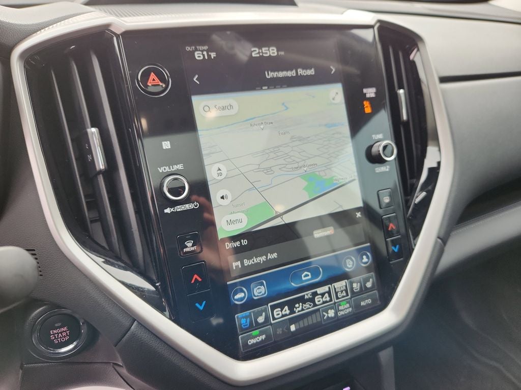 - Radio: Subaru 11.6" Multimedia System w/Navigation -inc: AM/FM stereo HD Radio, multi-touch gesture high resolution display screen, voice activated controls for radio and navigation, Bluetooth® audio streaming and hands-free phone connectivity w/SMS text messaging connectivity (refer to subaru.com for cell phone compatibility), Near Field Communication (NFC), TomTom navigation software w/what3words, iPod control capability, smartphone integration for Android Auto and Apple CarPlay w/full screen view and wireless connection, USB audio system update, TomTom navigation system update w/USB/Map Over The Air (MOTA) (3 years free map updates), steering wheel control switches for audio and Bluetooth®, harman/kardon quantum logic surround sound speaker system w/14 speakers, subwoofer and harman/kardon 792 watt equivalent maximum output amplifier, 3.5mm illuminated auxiliary input jack, illuminated USB A and C input/charge ports, SiriusXM w/360L (4 months free trial included/subscription required after), SiriusXM Travel Link (4 months free trial included/subscription required after) and SiriusXM Traffic (3 years free trial included/subscription required after)
